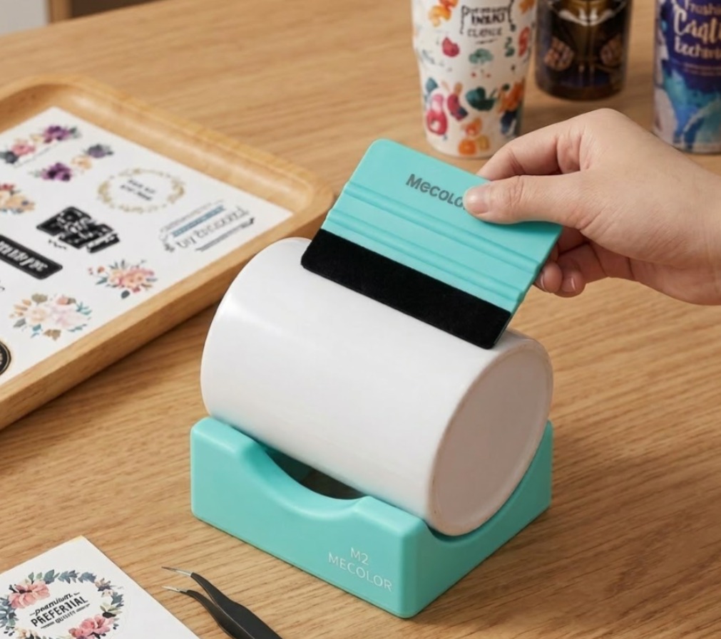 Espátula e Suporte para Adesivagem de Produtos Cilíndricos - Mecolour